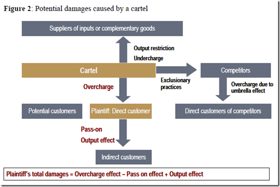Cualquier cártel puede comportar una indemnización cuando CAUSE UN DAÑO, es decir, cuando los cartelistas hayan CONSEGUIDO SUBIR LOS PRECIOS en relación con los precios competitivos. Si el cártel no ha tenido efectos, puede ser sancionado administrativamente, pero no daría derecho a indemnización porque no habría producido daños. En todo caso, la regla res ipsa loquitur -presunción de que se han generado daños - ayuda al demandante