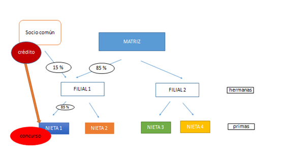 No creo que con el adjetivo “comunes” el legislador pretendiese que, para considerar al socio persona especialmente relacionada, éste deba ser titular directo de una participación de la concursada. Creo que lo que pretendía el legislador con el adjetivo “comunes” era precisar que no se subordinaba a cualquier socio de una sociedad del grupo (en el dibujo, por ejemplo, a un socio con un 15% de FILIAL 2), sino sólo a aquellos que efectivamente tienen relación con la concursada (por ejemplo, a un socio con 15% de FILIAL 1). No tiene sentido que se subordine al socio que tiene un 9,99% de FILIAL 1 y un 0,01% de NIETA 1, y no se subordine al socio que tiene un 15% de FILIAL 1, pero no tiene participación en NIETA 1. En cualquier caso, insisto en que la norma no es clara y que cabe interpretarla.
